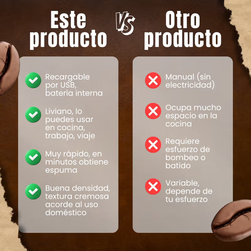 Ligero, silencioso y recargable por USB. Con solo un toque,este batidor crea espuma para capuchinos, lattes o malteadas de manera práctica y sencilla.