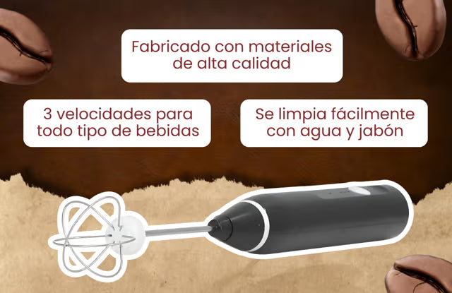 Con el Batidor CremaFlow® prepara tu café cremoso, chocolate espumoso o malteadas, con una textura suave y deliciosa desde casa.